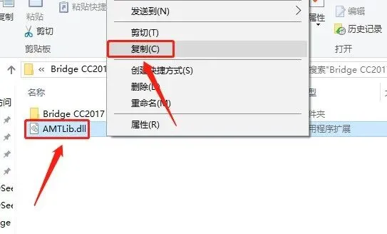 11.返回到开头解压的【Bridge CC2017】文件夹,鼠标右击【AMTLIib】选择【复制】。