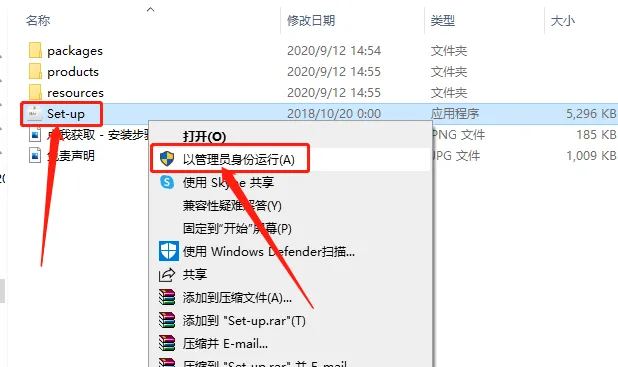 4.在打开的文件夹中,鼠标右击【Set-up】安装程序,选择【以管理员身份运行】。