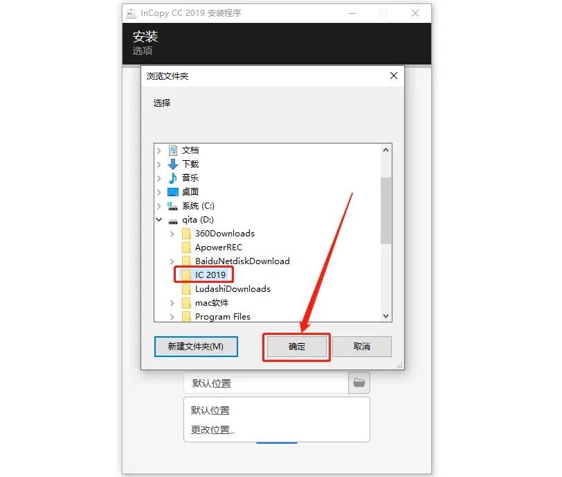 7.可在D盘或者其它磁盘里创建一个新的文件夹,然后点击【确定】即可。