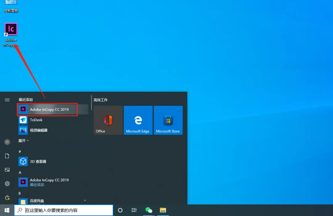 11.在桌面左下角的开始菜单中找到Adobe InCopy软件,鼠标拖拽到桌面上即可创建桌面启动方式。