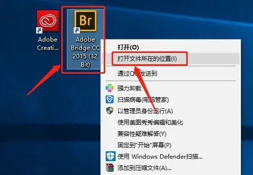 10.鼠标右击桌面【Adobe Bridge CC 2015(32 Bit)】软件图标,选择【打开文件所在的位置】。