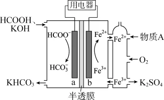 3. 甲酸燃料电池工作原理如下图所示,已知该半透膜只允许K+通过。下列有关说法错误的是()
