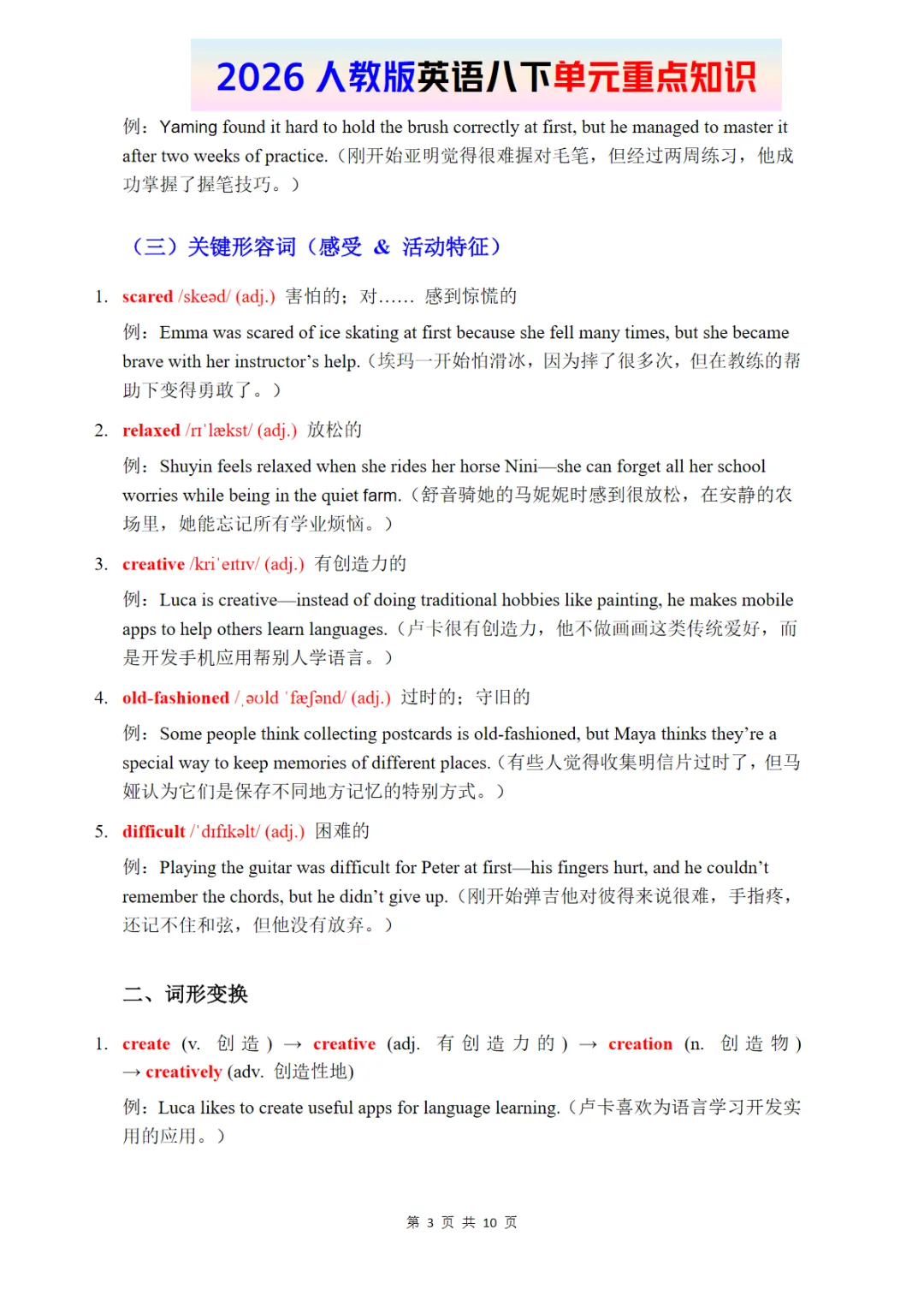 八年级(下)英语 Unit 1 单元重点知识《人教版》https://pan.baidu.com/s/1H4mYyo24_pdKYAozVubFRA?pwd=8888复制上边链接,微信里发给自己,即可点击保存