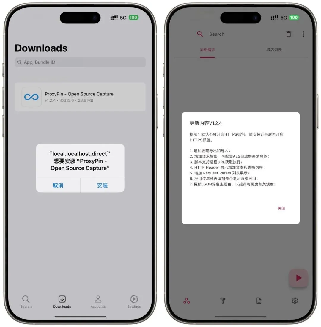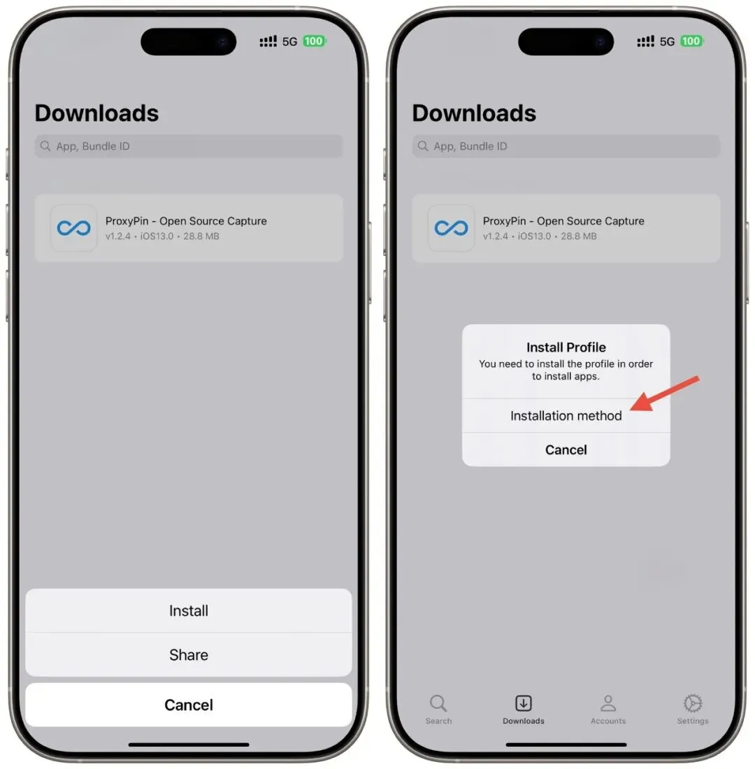 下载完成后,在下载管理页面找到对应的 IPA 文件,点击「Install」按钮,DLiPA 会调用系统安装流程,直接将应用安装到当前设备,全程无需电脑介入。