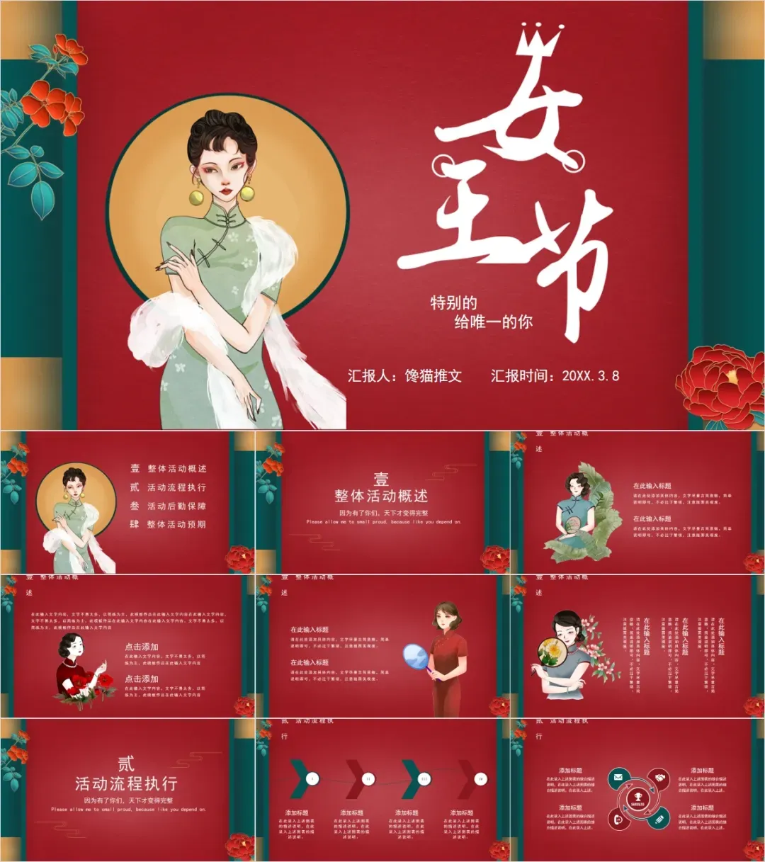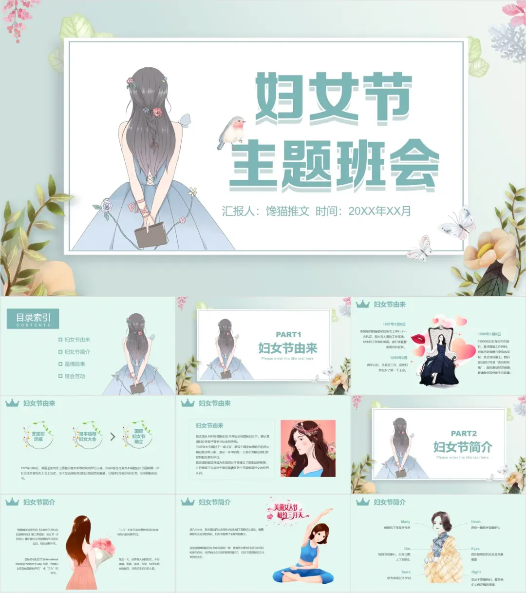 P今天分享的是98套三八妇女节女神节ppt模板