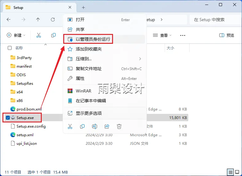 3.右键【Setup.exe】选择【以管理员身份运行】