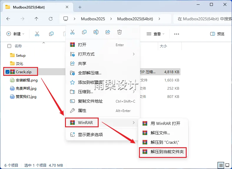 10.返回安装包;右键【Crack】选择【解压到当前文件夹】