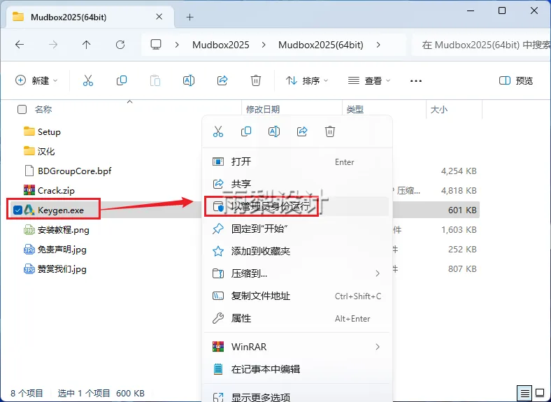 11.右键【keygen.exe】选择【以管理员身份运行】