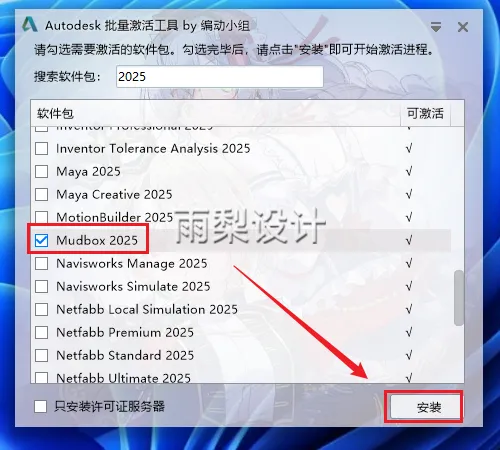 12.选择【Mudbox2025】点击【安装】