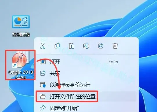 20.鼠标右击【Origin 2018 64Bit】图标选择【打开文件所在的位置】。