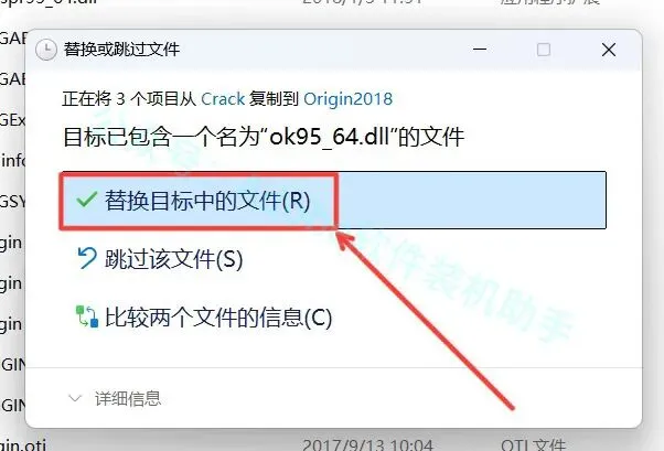 22.点击【替换目标中的文件】。