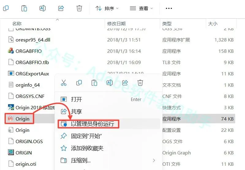 23.鼠标右击粘贴后的【Origin】选择【以管理员身份运行】(运行即可,不会出现界面)。