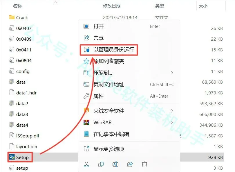 3.双击打开解压后的文件夹,鼠标右击【setup】选择【以管理员身份运行】。