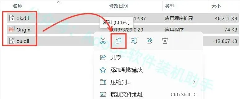 18.全选【crack】文件夹中的所有内容,鼠标右击选择【复制】。