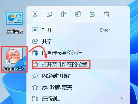 20.鼠标右击【Origin 2021】图标选择【打开文件所在的位置】。