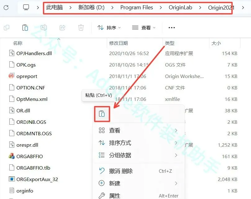 17.打开安装包解压后的【Origin 2021】文件夹中的【crack】文件夹。