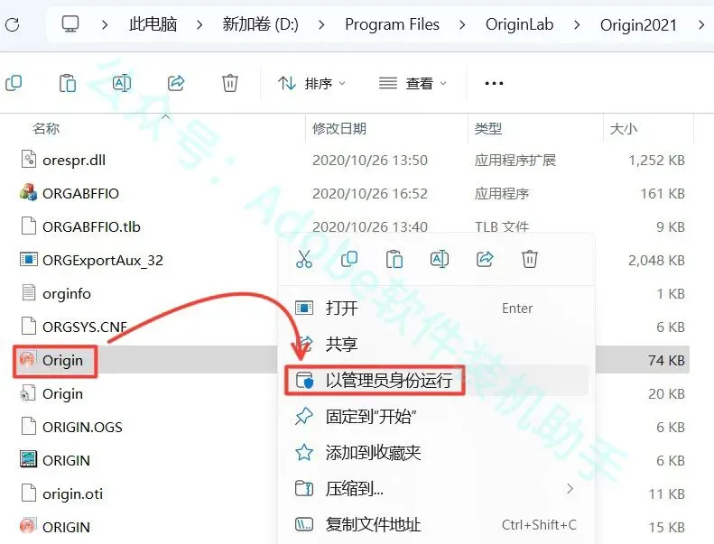 23.鼠标右击粘贴后的【Origin】选择【以管理员身份运行】(运行即可,不会出现界面)。