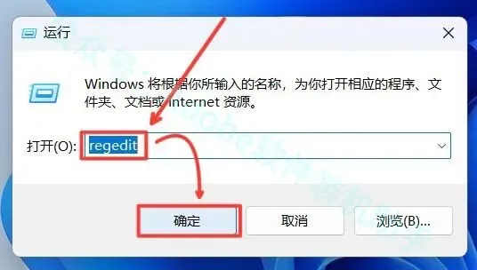 ①在键盘上同时按【win+R】键,输入【regedit】,点击【确定】。