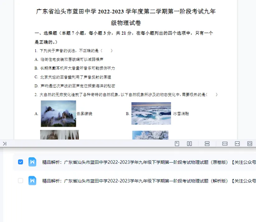 通过网盘分享的文件:【免费下载】精编广东省汕头市蓝田中学20222023学年九年级下学期第一阶段考试物理试题