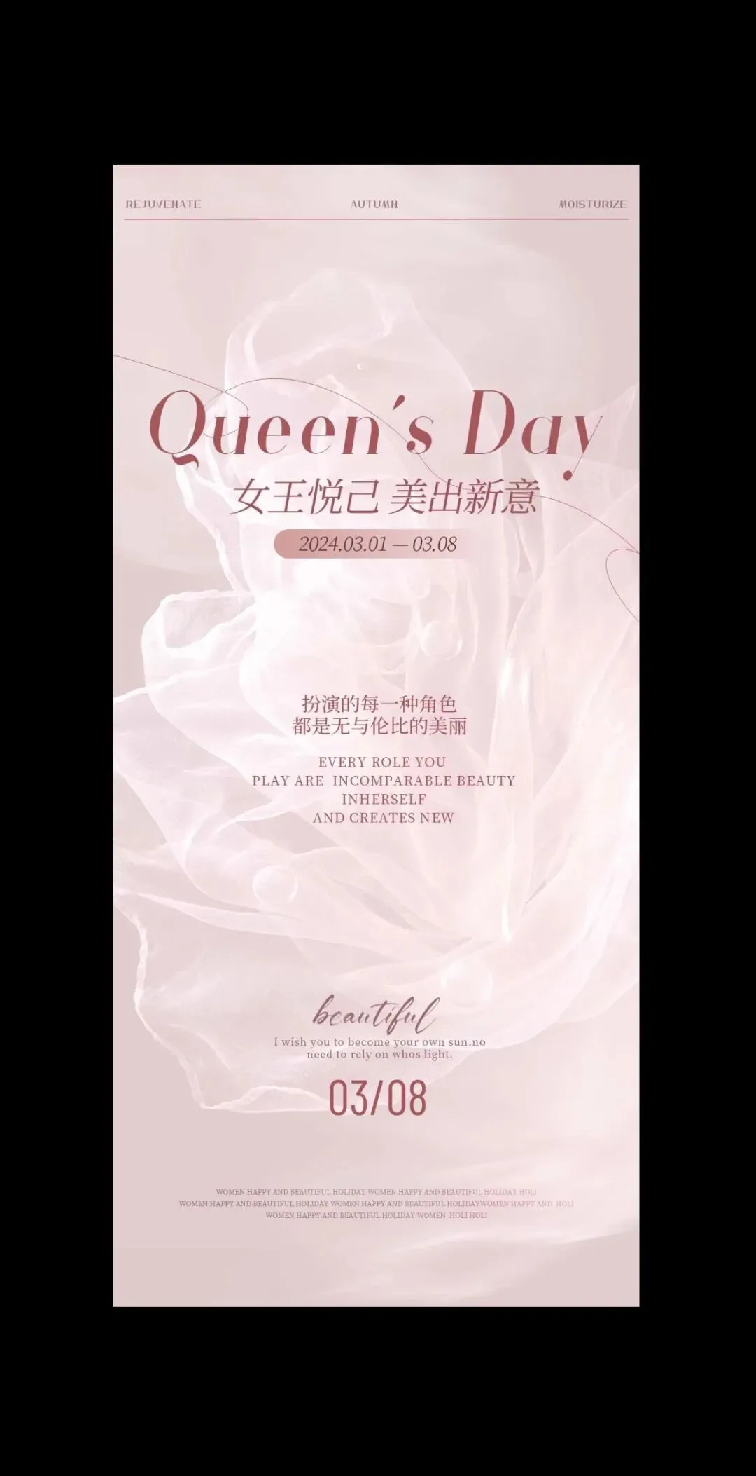 💖女神节快到了,准备好迎接这个特别的日子了吗?🌹 在这充满爱和温馨的日子里,给自己一个变美的理由,穿上美美的妆容,以最完美的状态迎接每一个美好瞬间。💕 无论你是职场女神还是家庭女神,都值得拥有最好的待遇和关怀。