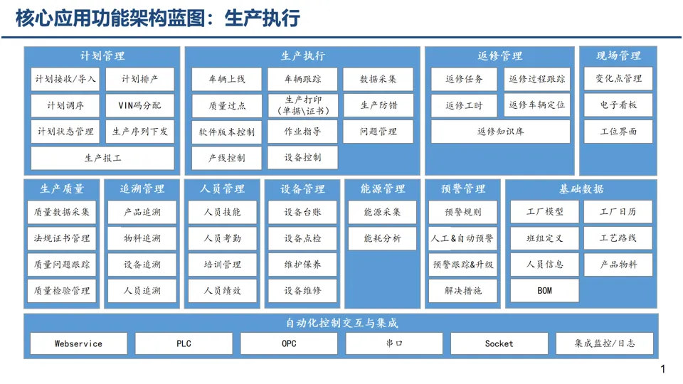 针对冲压、焊装、涂装、总装四大环节,规划数字化、智能化装备与技术,如智能天车、自动化合装设备、能源智能控制技术等,夯实智能制造硬件基础。