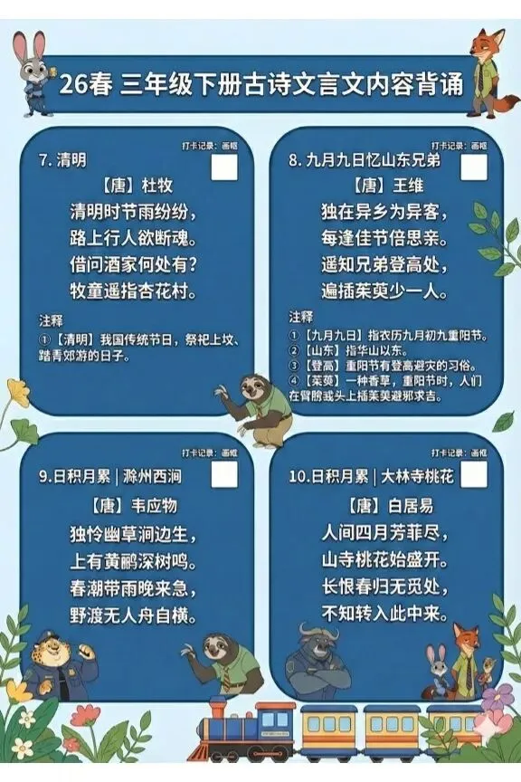 三年级(下)语文 新版必备内容打卡表-疯狂动物城