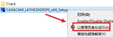 “CAXACAM_LATHE2020SP0_x64_Setup”,右键选择“以管理员身份运行”