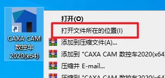 9.在桌面上找到“CAXA CAM 数控车2020(x64)”软件图标,鼠标右键选择“打开文件位置”