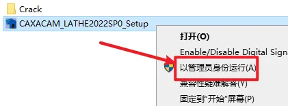 2.打开刚刚解压的文件夹,选中“CAXACAM_LATHE2022SP0_Setup.exe”文件,右键选择“以管理员身份运行”