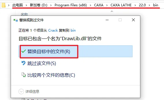 10.粘贴复制的文件到该路径下,选择“替换目标中的文件”