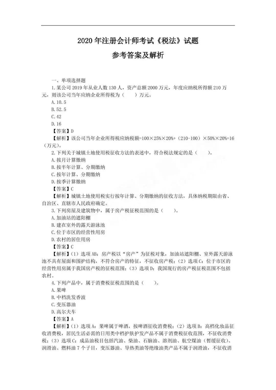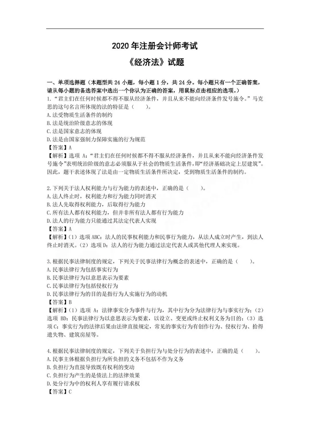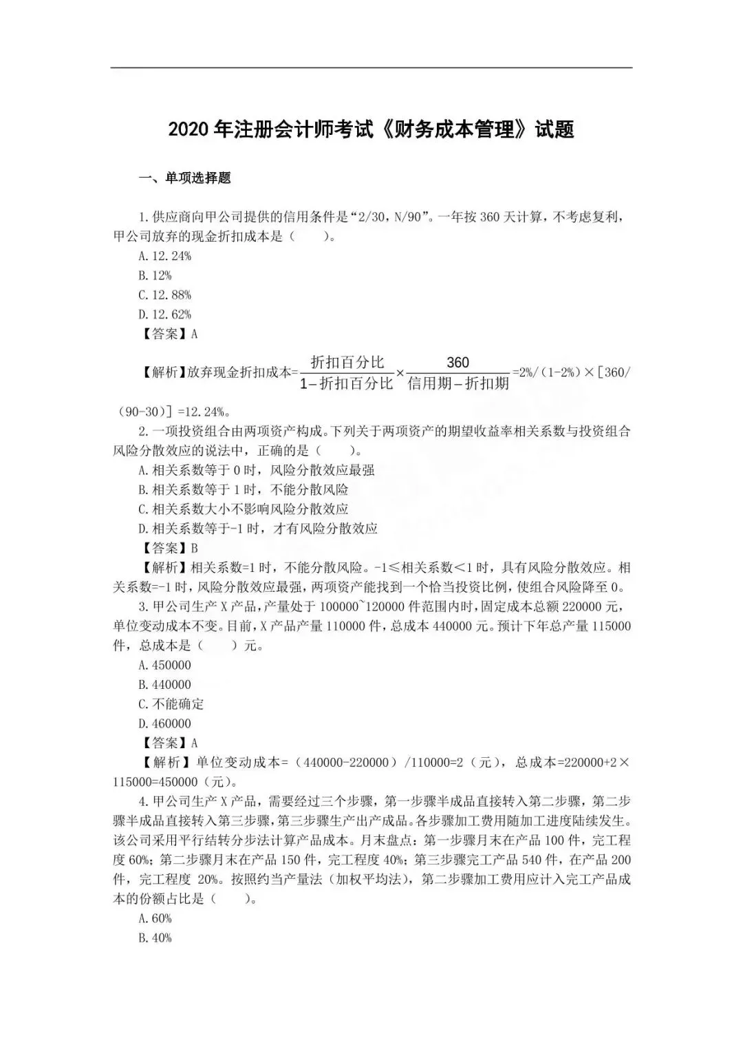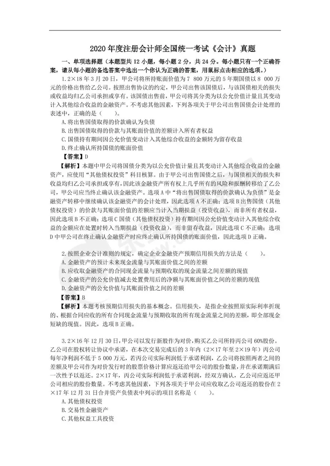 近三年注册会计师真题及答案汇总