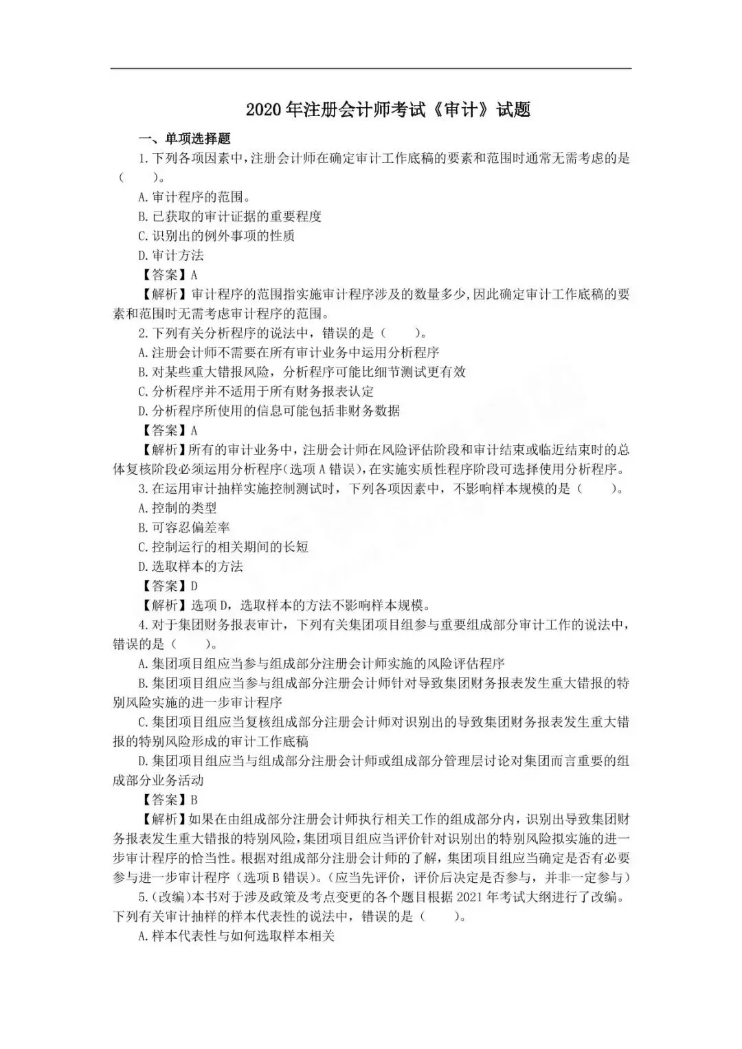 注册会计师考试官方教材每年都会发生或多或少的内容调整,建议各位考生不要在网上随意下载注册会计师真题及答案,这样的真题对大家的备考帮助并不大,甚至可能误导大家的学习方向。