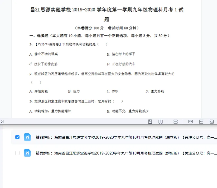 通过网盘分享的文件:【免费下载】精编海南省昌江思源实验学校20192020学年九年级10月月考物理试题