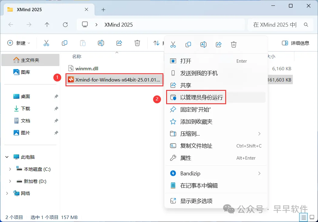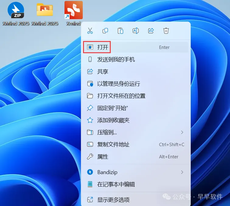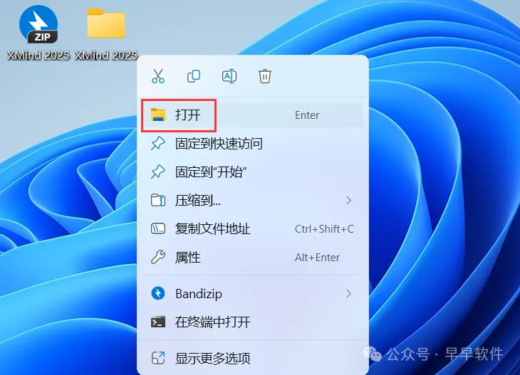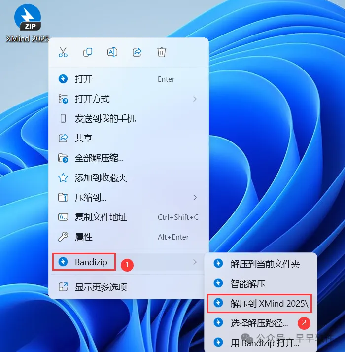 1、下载XMind 2025软件安装包到电脑上,右键选择【解压到XMind 2025\】