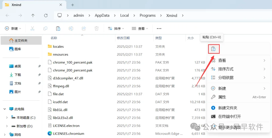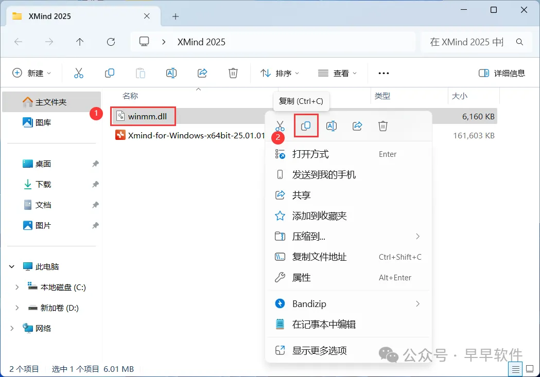 9、回到Xmind 2025文件夹,找到【winmm.dll】文件,再右键点击【复制按钮】