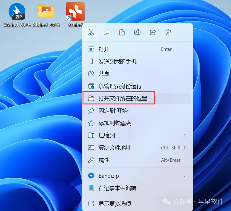 10、回到桌面,右键桌面上的【Xmind软件图标】,点击【打开文件所在的位置】