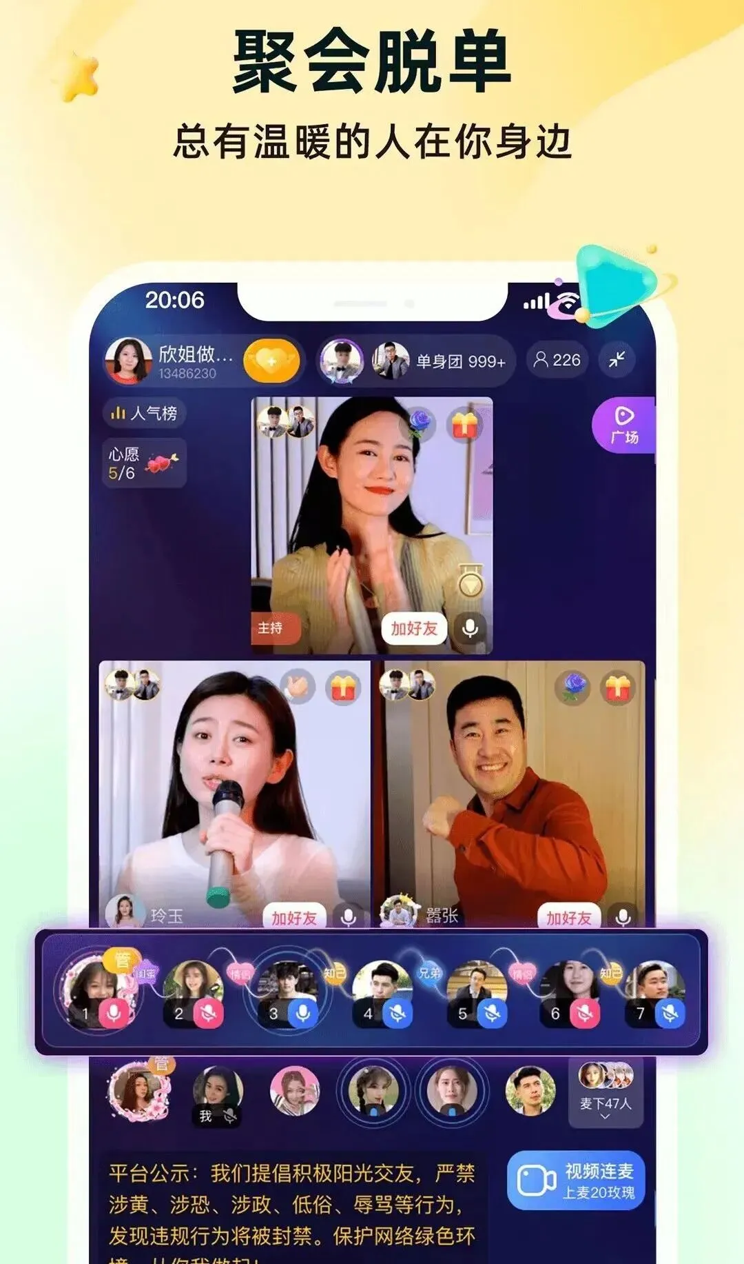 3. 多人语音,好玩有趣除了传统的一对一交流,伊对还提供好玩的多人语音视频聊天功能。和几个朋友一起连麦,聊聊生活,唱唱歌,玩玩游戏,在轻松愉快的氛围中认识更多有趣的人。聊开心再见面,让脱单变得更自然、更轻松。