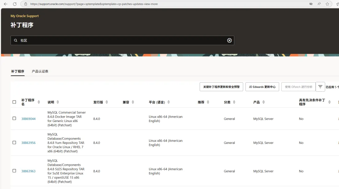 mysql企业版补丁下载方法(改版后)