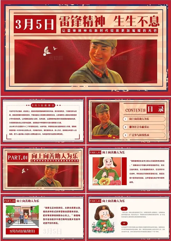 ◆本期分享:学雷锋纪念日主题PPT模板(10套)
