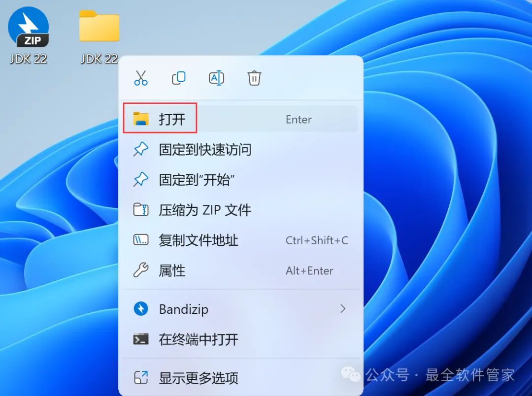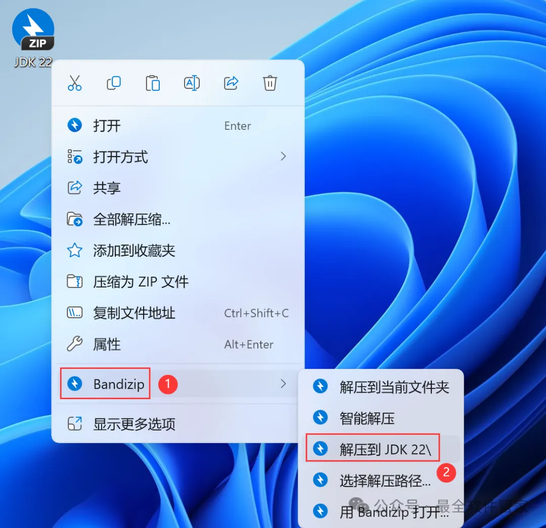 1、下载JDK 22软件安装包到电脑上,右键选择【解压到JDK 22\】
