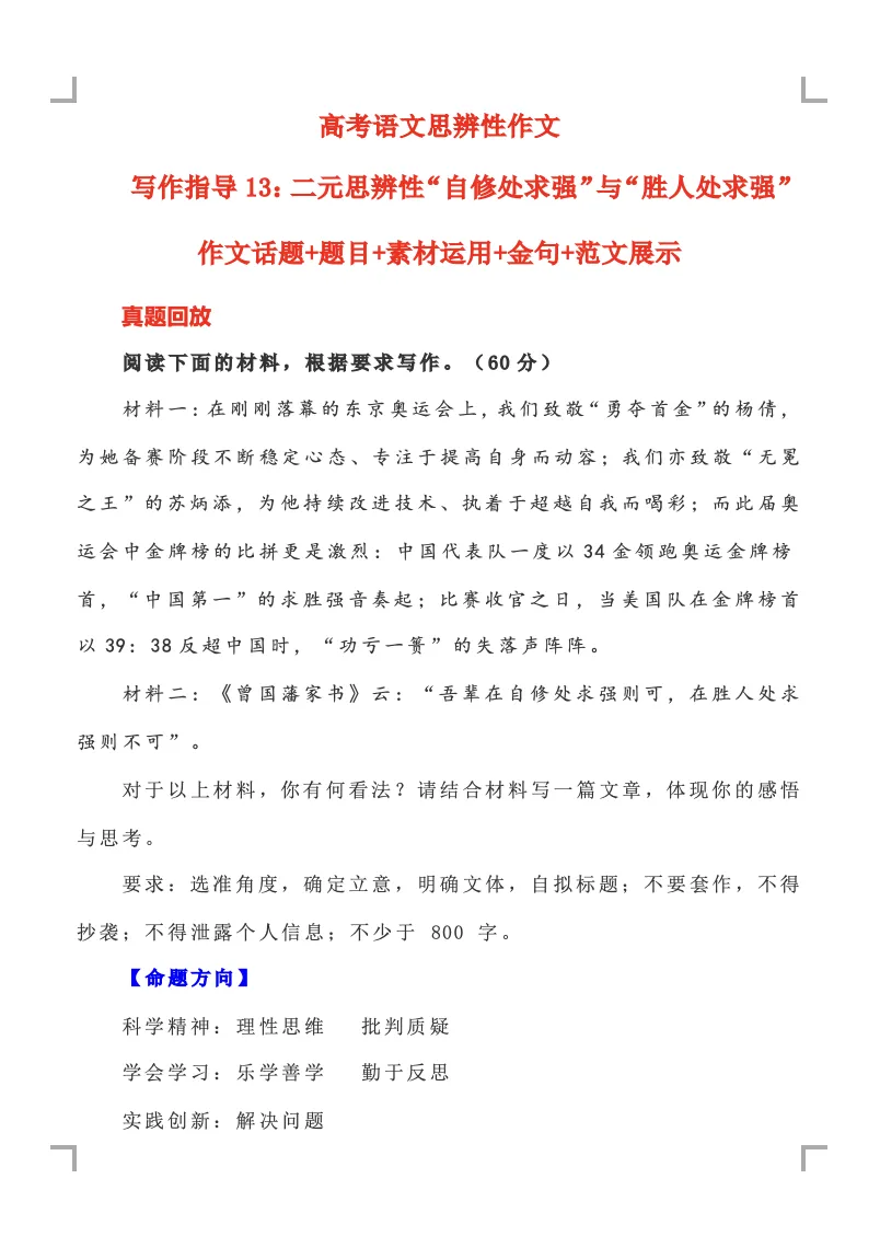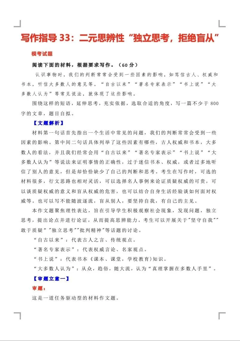 >高考思辨类作文系列指导1-30|免费下载