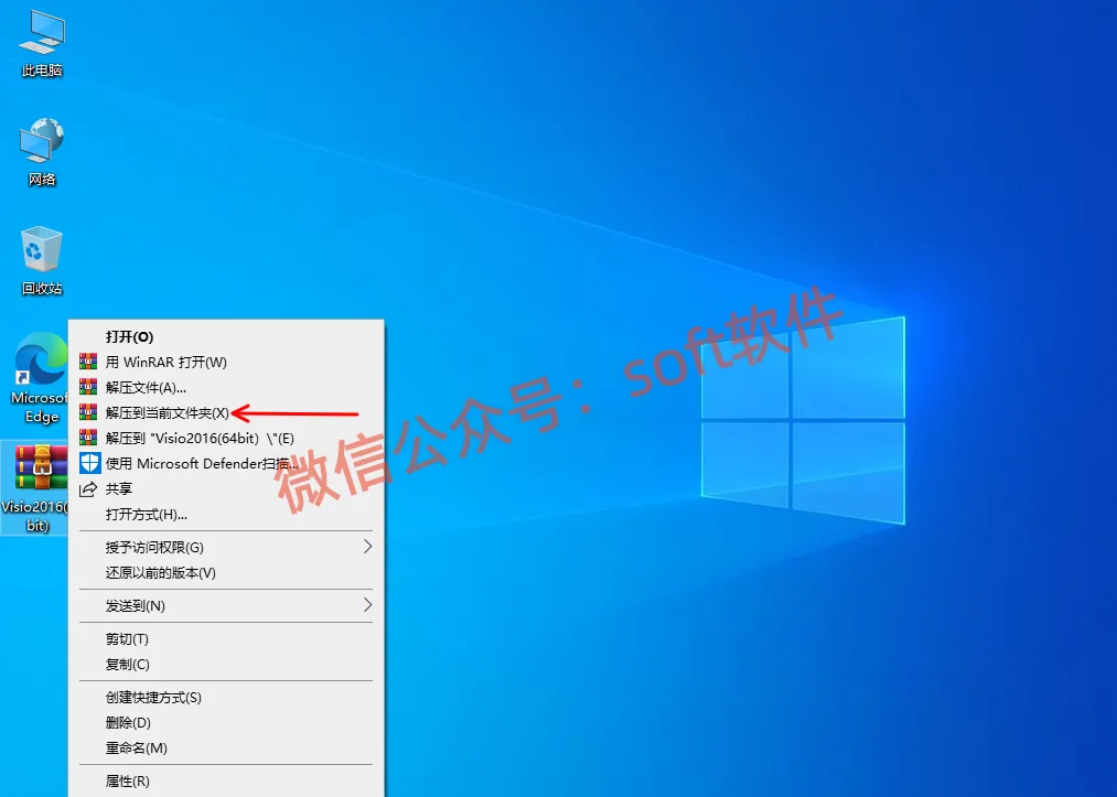 1,右键解压安装包至当前文件夹(注意,解压之前先关闭杀毒软件和window安全中心,避免激活工具被删除。)