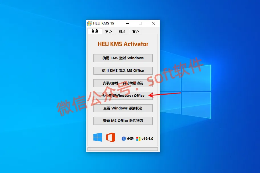 11,点永久使用Windows+office选项,然后耐心等待激活