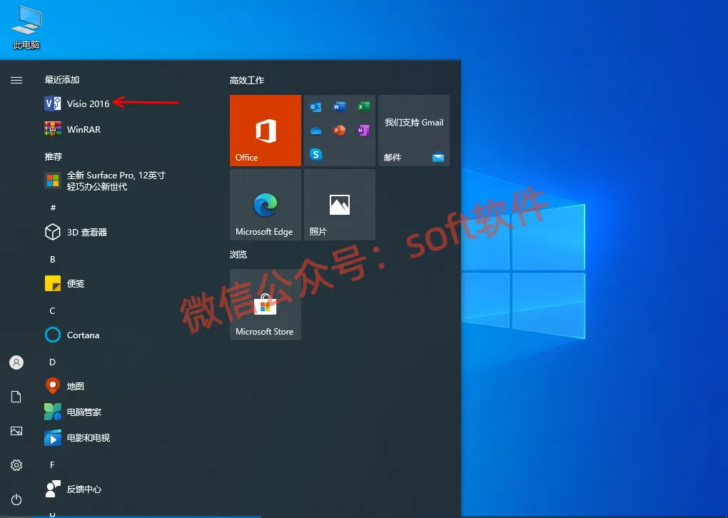 14,回到桌面,鼠标点左下角开始,选择Visio2016程序打开即可使用
