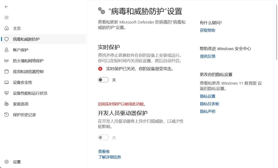 关闭杀毒软件:关闭电脑中的杀毒软件,否则可能会被误报。安装完成后可恢复打开杀毒软件,实际使用中不会被限制隔离。下图为Win11关闭操作所示。