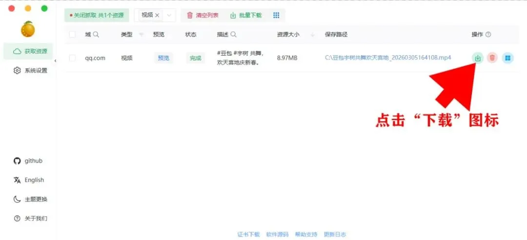 下载完成后,直接点击上图中的蓝色“保存路径”字条就可以看到已经下载的不带水印视频文件了。