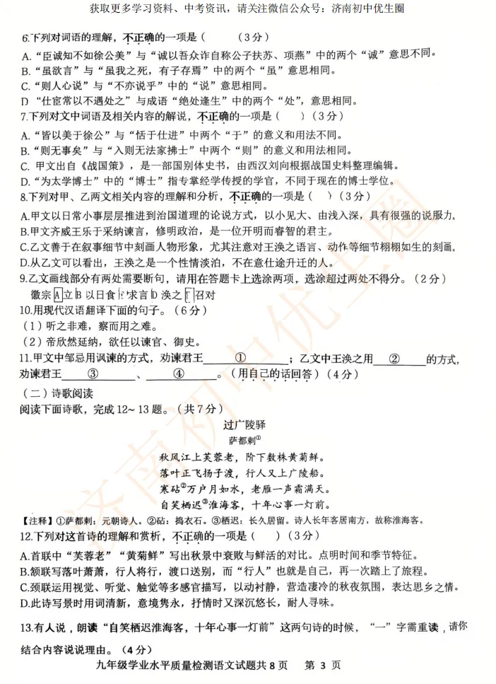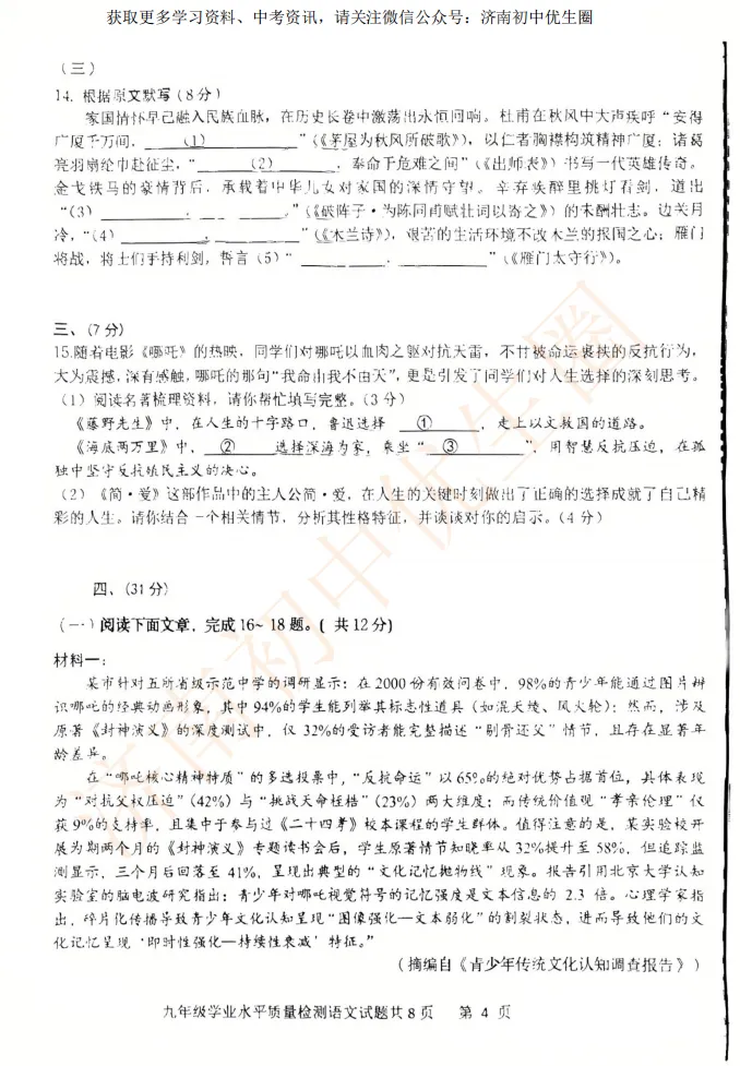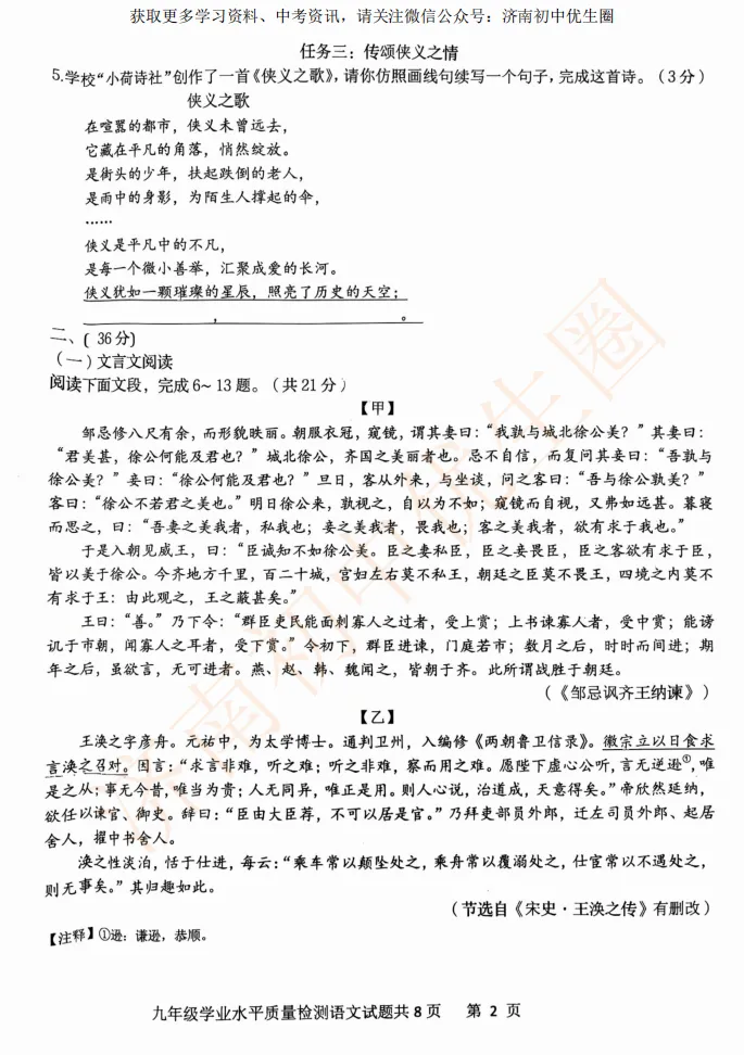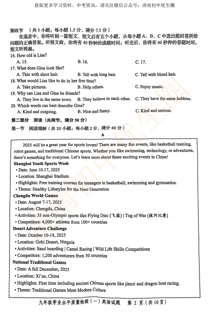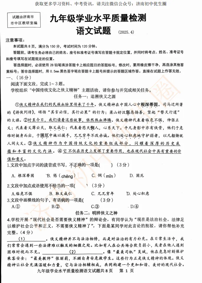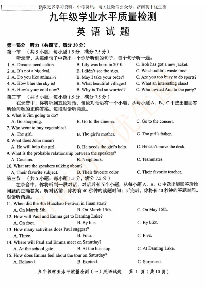 一模时间定了!24年济南初三一模真题+答案解析免费领取!
