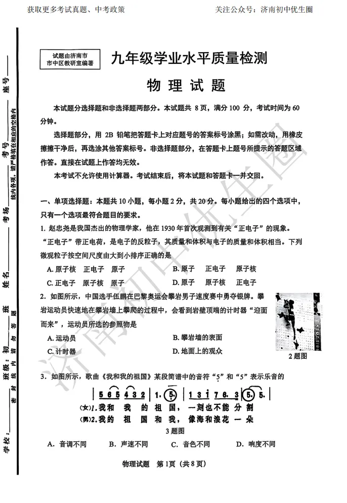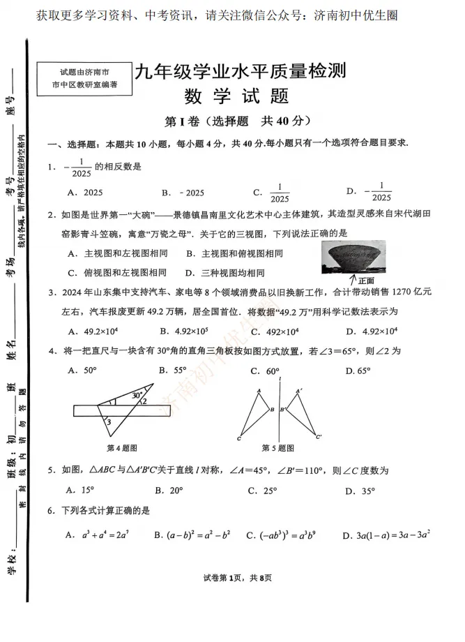 历下又难哭了?2025.3历下区一模数学+物理试卷“出炉”,速领真题