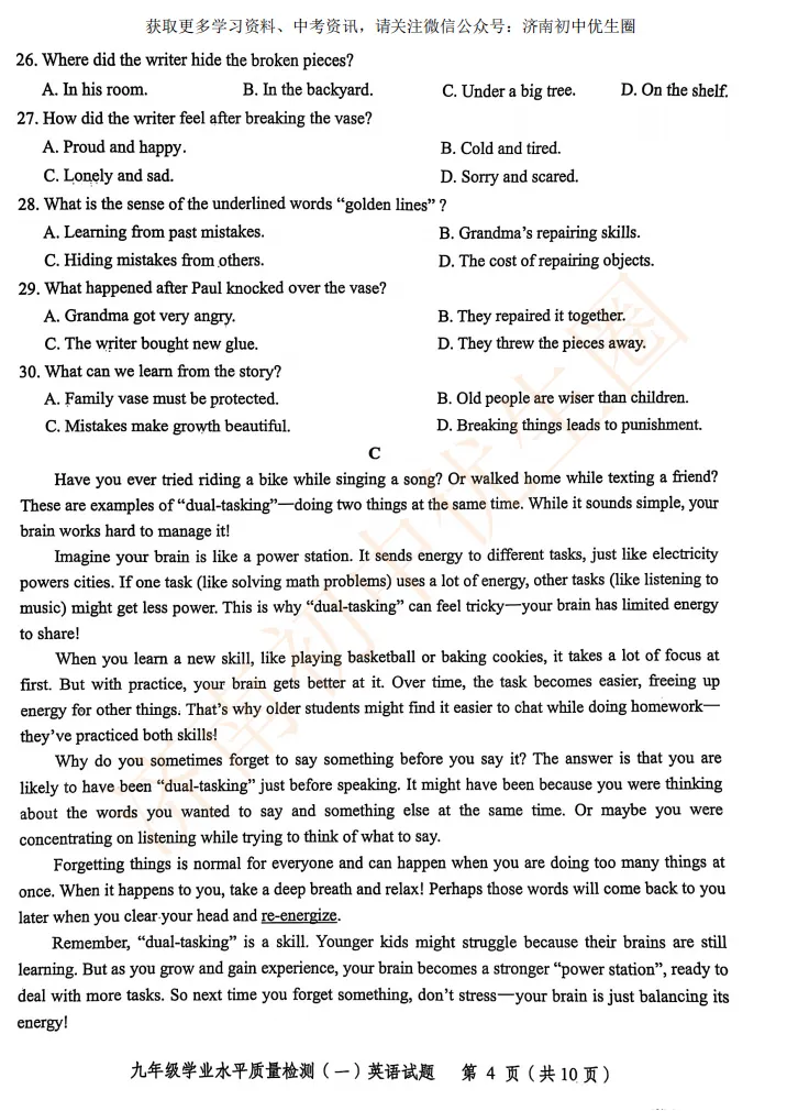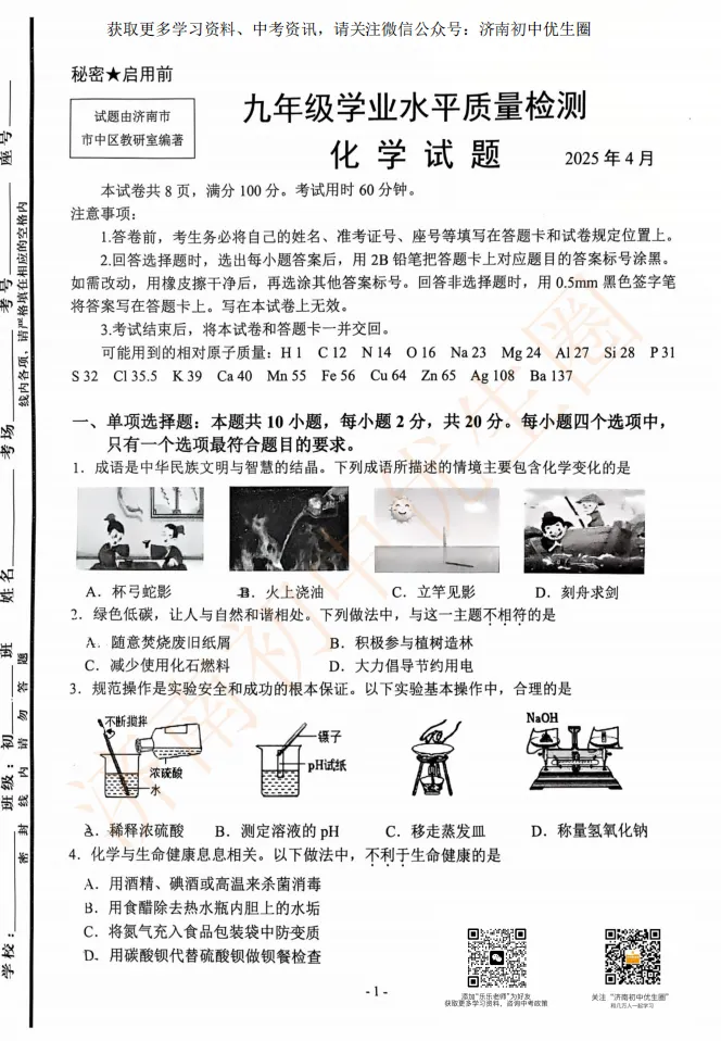 今天小初老师给大家整理25年市中区一模真题,初三的孩子开学后马上就要面临一模考试,大家可以利用假期提前准备。PDF高清版,可以扫描下方二维码免费获取!