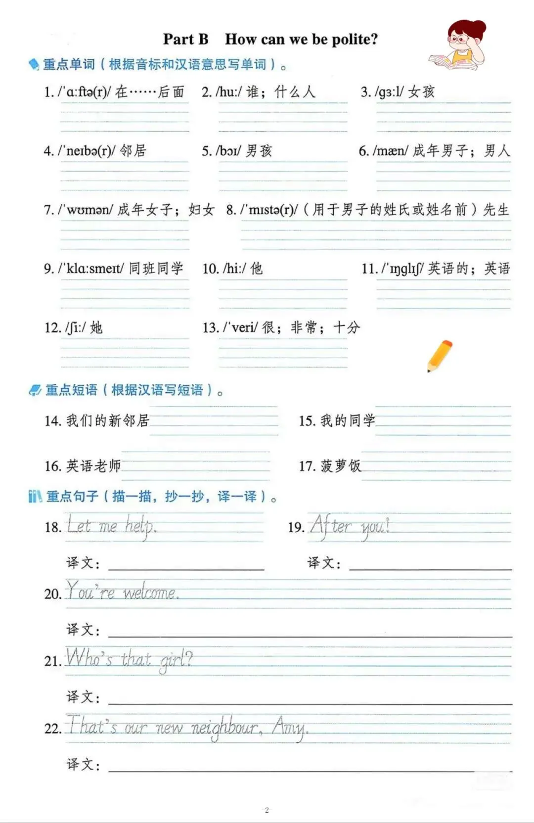 三年级(下)英语 重点单词句子默写单《人教版PEP》